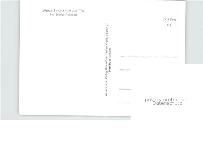 72582611 Allendorf Bad Sooden Werra Sanatorium der BfA postalisch nicht gelaufen Erhaltung siehe scans [FriedD77] KatCode: 11110006436001