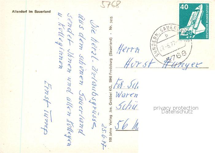 73870514 alte Postkarte Allendorf Sauerland Sundern Panorama postalisch gelaufen Erhaltung siehe scans [WerneD78] KatCode: 11110005958044