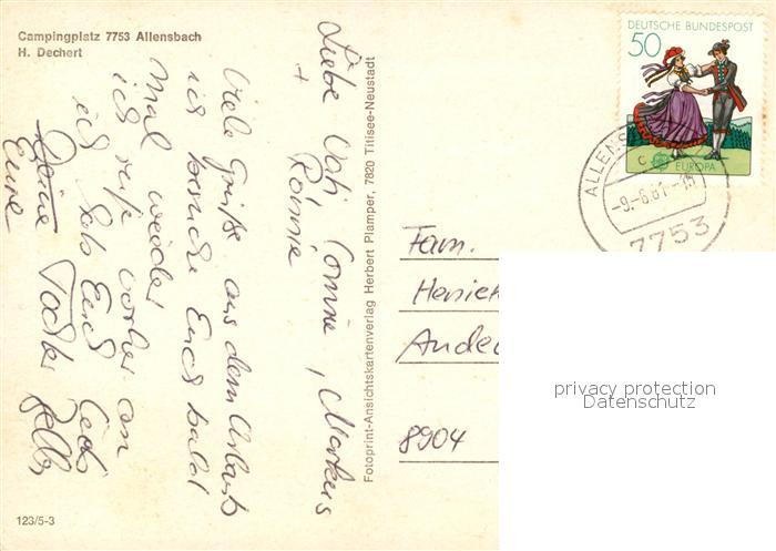 73128447 alte Postkarte Allensbach Bodensee Camping postalisch gelaufen Erhaltung siehe scans [NatalD47] KatCode: 11110008335002