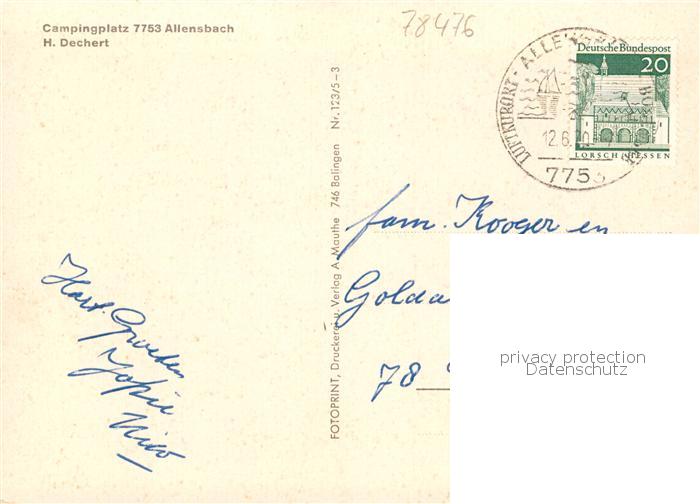 73867765 alte Postkarte Allensbach Bodensee Campingplatz Kiosk Uferpartie am See postalisch gelaufen Erhaltung siehe scans [FriedD77] KatCode: 11110008335002