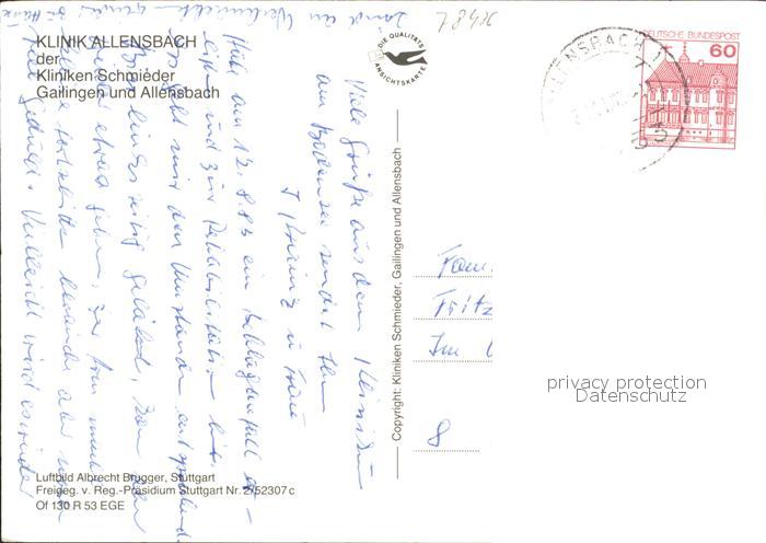 71900167 alte Postkarte Allensbach Bodensee Fliegeraufnahme Klinik Bodensee Gailingen postalisch gelaufen Erhaltung siehe scans KatCode: 11110008335002
