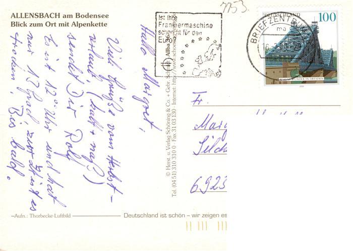 73942125 alte Postkarte Allensbach Bodensee Fliegeraufnahme postalisch gelaufen Erhaltung siehe scans [WerneD78] KatCode: 11110008335002