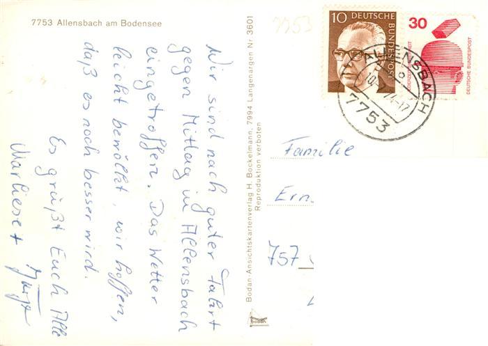 73941905 alte Postkarte Allensbach Bodensee Kirche Bootsliegeplatz Segeln postalisch gelaufen Erhaltung siehe scans [WerneD78] KatCode: 11110008335002