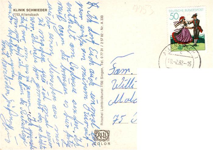 73941882 alte Postkarte Allensbach Bodensee Klinik Schmieder postalisch gelaufen Erhaltung siehe scans [WerneD78] KatCode: 11110008335002