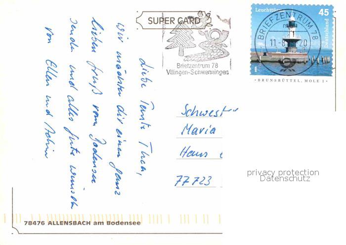 72696765 alte Postkarte Allensbach Bodensee Ortsansicht mit Kirche mit Blick zu den Alpen Saentisgebiet postalisch gelaufen Erhaltung siehe scans [FriedD77] KatCode: 11110008335002