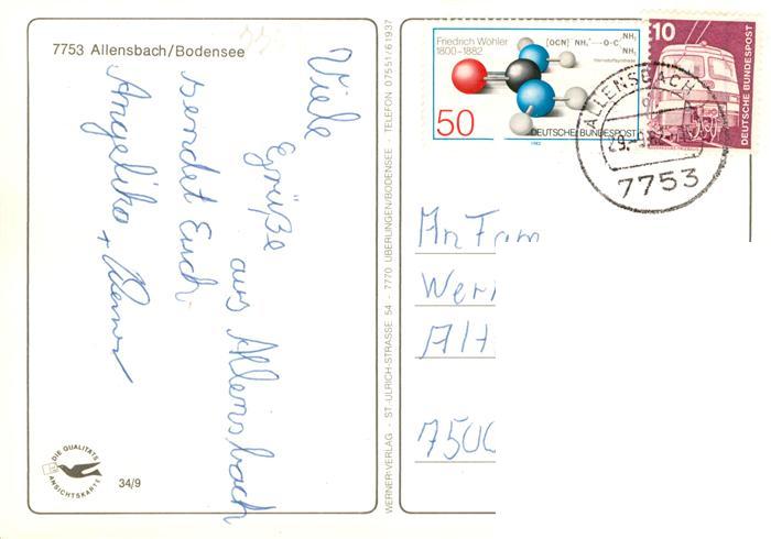 73942081 alte Postkarte Allensbach Bodensee Panorama Kliniken Strand Park postalisch gelaufen Erhaltung siehe scans [WerneD78] KatCode: 11110008335002