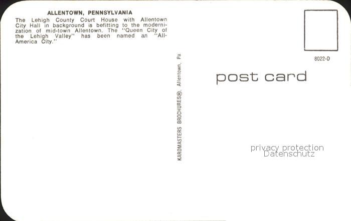 72134417 Allentown Pennsylvania Lehigh County Court House City Hall postalisch nicht gelaufen Erhaltung siehe scans KatCode: 14140410000000