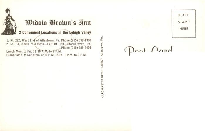73880487 Allentown Pennsylvania USA Widow Brown’s Inn Gastraeume postalisch nicht gelaufen Erhaltung siehe scans [WerneD78] KatCode: 14140410000000