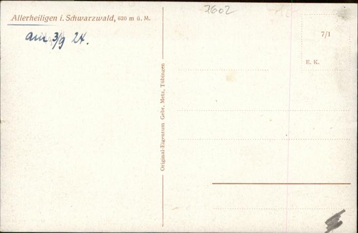71033440 alte Postkarte Allerheiligen Oppenau postalisch gelaufen KatCode: 11110008317098