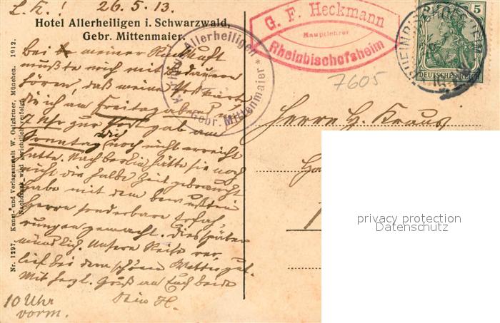 43329773 alte Postkarte Allerheiligen Oppenau Hotel Allerheiligen Schwarzwald postalisch gelaufen Erhaltung siehe scans [FriedD77] KatCode: 11110008317098