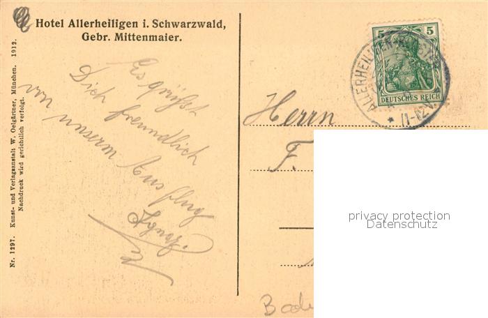 43495289 alte Postkarte Allerheiligen Oppenau Kloster Ruine postalisch gelaufen Erhaltung siehe scans [KathaD81] KatCode: 11110008317098