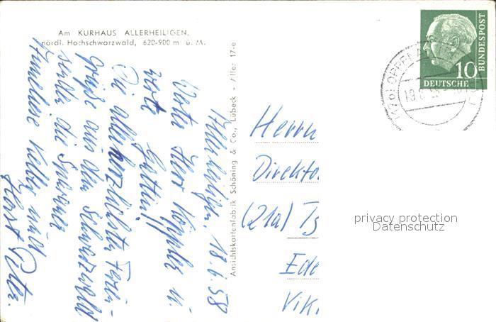 72058303 alte Postkarte Allerheiligen Oppenau Kurhaus postalisch gelaufen Erhaltung siehe scans KatCode: 11110008317098