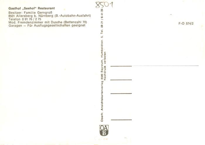 73893184 Allersberg Gasthof Seehof Gastraum Seepartie postalisch nicht gelaufen Erhaltung siehe scans [WerneD78] KatCode: 11110009576113