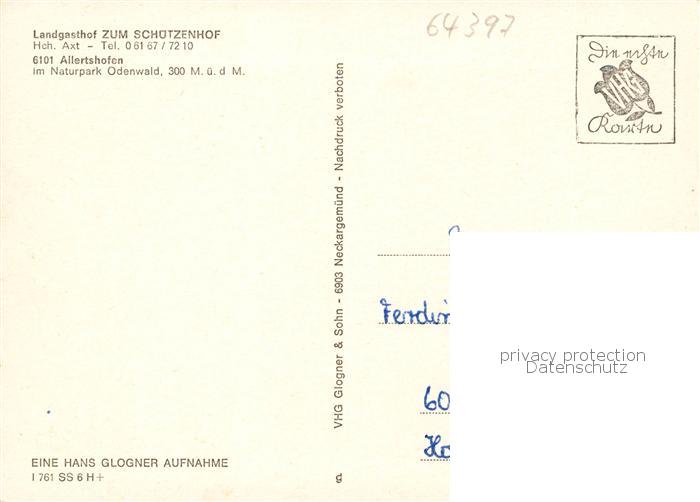 73867113 Allertshofen Darmstadt Gasthof Schuetzenhof Restaurant Panorama Naturpark Odenwald postalisch nicht gelaufen Erhaltung siehe scans [FriedD77] KatCode: 11110006432013