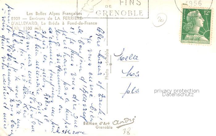 13502127 carte postale Allevard les Bains Isere Environ de la Ferriere Breda postalisch gelaufen Erhaltung siehe scans [LiesaD40] KatCode: 11170038138006