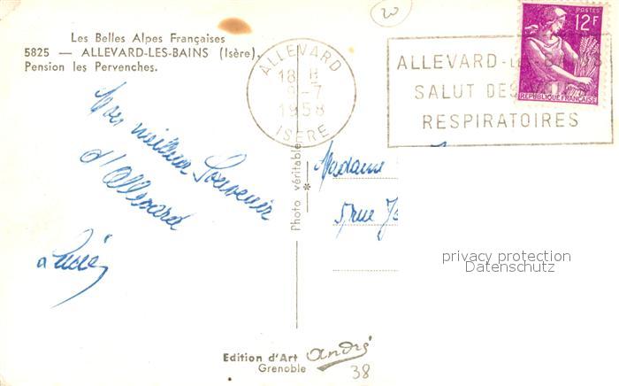 13503897 carte postale Allevard les Bains Isere Pension les Pervenches postalisch gelaufen Erhaltung siehe scans [FriedD77] KatCode: 11170038138006