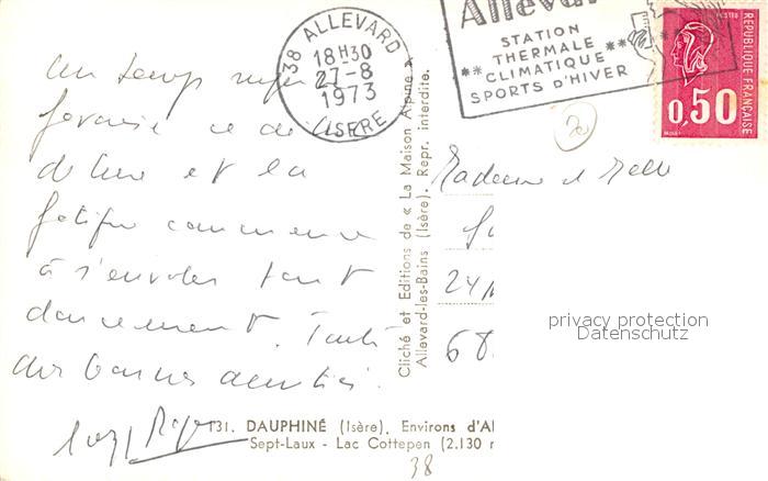 13503898 carte postale Allevard les Bains Isere Sept Laux Lac Cottepen Alpes postalisch gelaufen Erhaltung siehe scans [FriedD77] KatCode: 11170038138006