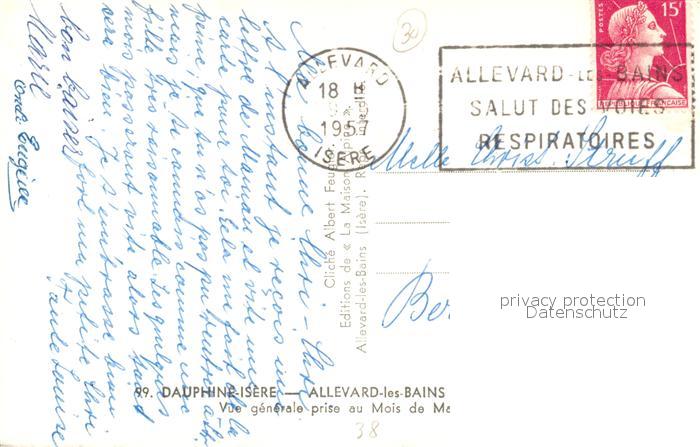 13503905 carte postale Allevard les Bains Isere Vue Generale prise au mois de Mai Alpes postalisch gelaufen Erhaltung siehe scans [FriedD77] KatCode: 11170038138006