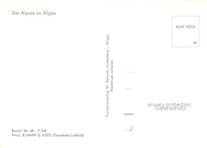 73737776 Allgaeu Region Alpsee im Allgaeu postalisch nicht gelaufen Erhaltung siehe scans [LiesaD40] KatCode: 11110009763000