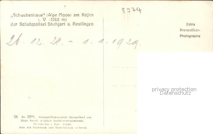 41635040 Allgaeu Region Schwabenhaus Kojen Schutzpolizei Stuttgart Reutlingen postalisch nicht gelaufen Erhaltung siehe scans KatCode: 11110009763000