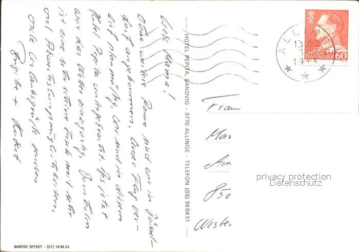 old postcard Allinge-Sandvig Hotel Pepita postalisch gelaufen
