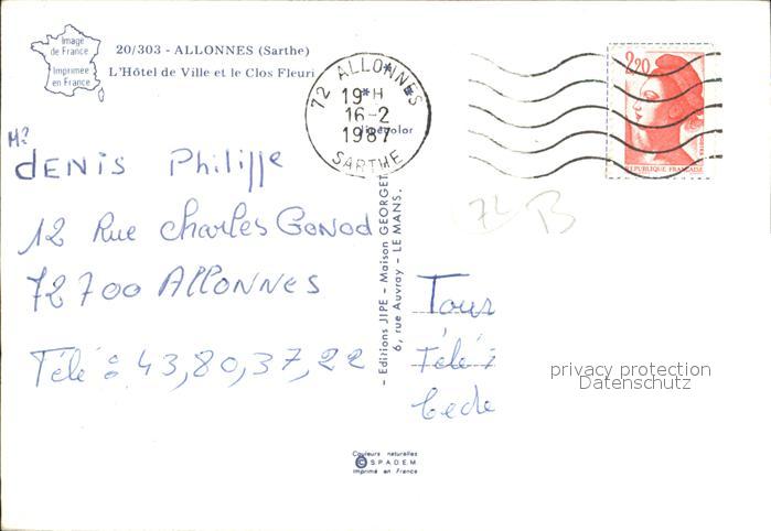 12002166 carte postale Allonnes Mans Hotel de Ville et Clos Fleuri postalisch gelaufen Erhaltung siehe scans KatCode: 11170072372003