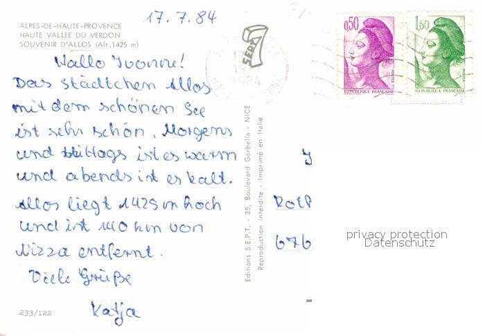 12651906 carte postale Allos Turm Panorama Seeblick postalisch gelaufen Erhaltung siehe scans [WerneD78] KatCode: 11170004204006