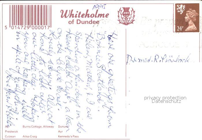 old postcard Alloway Ayrshire Prestwick Ayr Culzean Kennedy`s Pass postalisch gelaufen Erhaltung siehe scans