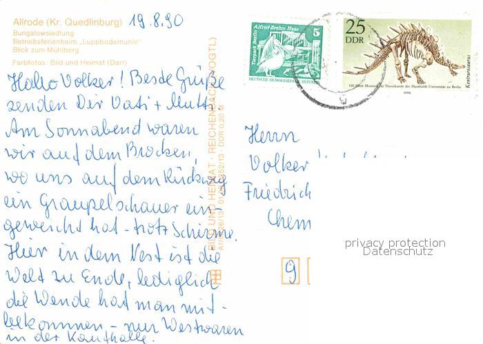 72617155 alte Postkarte Allrode Bungalowsiedlung Betriebsferienheim Luppbodemuehle Muehlbergblick postalisch gelaufen Erhaltung siehe scans [WerneD78] KatCode: 11110015085010