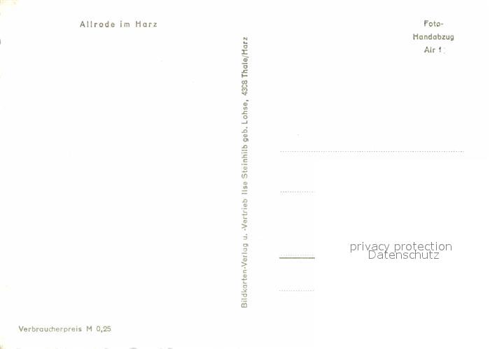 72694021 Allrode Ferienheim Landschaftspanorama 1000jaehriger Ort Handabzug postalisch nicht gelaufen Erhaltung siehe scans [FriedD77] KatCode: 11110015085010