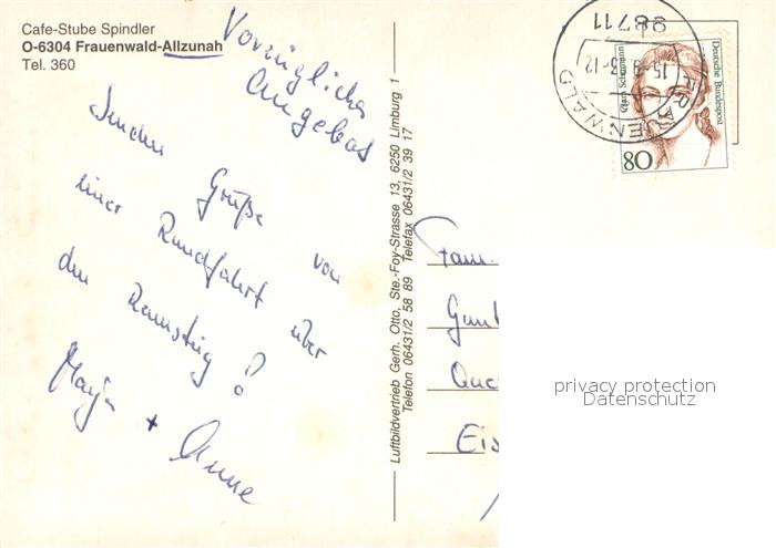 73661796 alte Postkarte Allzunah Cafe Stube Spindler Fliegeraufnahme postalisch gelaufen Erhaltung siehe scans [FriedD77] KatCode: 11110016070015