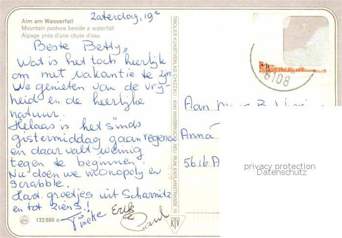 72864997 alte Postkarte Alm Saalfelden Wasserfall postalisch gelaufen Erhaltung siehe scans [LiesaD40] KatCode: 11390322050619