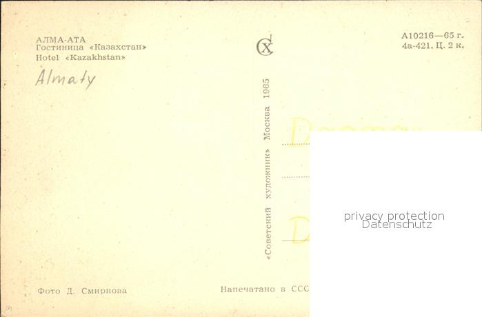 Alma-Ata Almaty Hotel Kazakhstan postalisch nicht gelaufen Erhaltung siehe scans