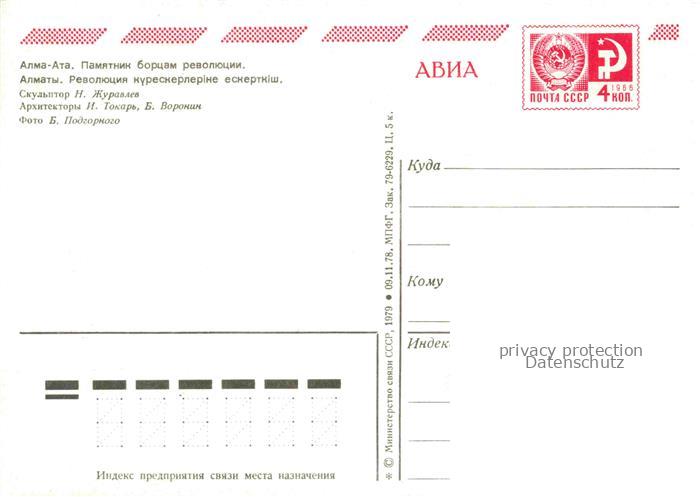 74042199 Alma-Ata Almaty Kasachstan Denkmal Revolution Kaempfer postalisch nicht gelaufen Erhaltung siehe scans [IrynaD87] KatCode: 12300