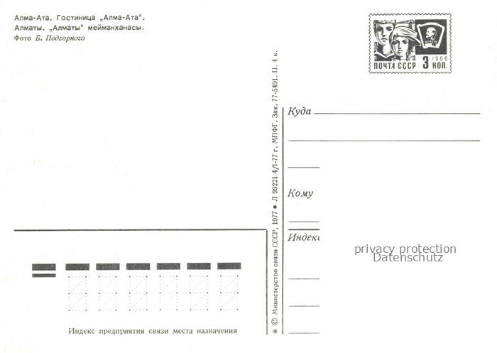 74042176 Alma-Ata Almaty Kasachstan Hotel Alma Ata postalisch nicht gelaufen Erhaltung siehe scans [IrynaD87] KatCode: 12300