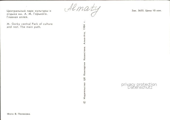 Alma-Ata Almaty M Gorky central Park of culture and rest. Main path postalisch nicht gelaufen Erhaltung siehe scans