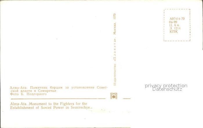 Alma-Ata Almaty Monument Fighters Establishment Soviet Power Semirechye postalisch nicht gelaufen Erhaltung siehe scans