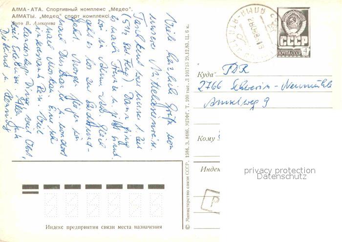 old postcard Alma-Ata Almaty Sportkomplex Medeo postalisch gelaufen Ganzsache (eingedruckte Briefmarke) Erhaltung siehe scans [NatalD47]