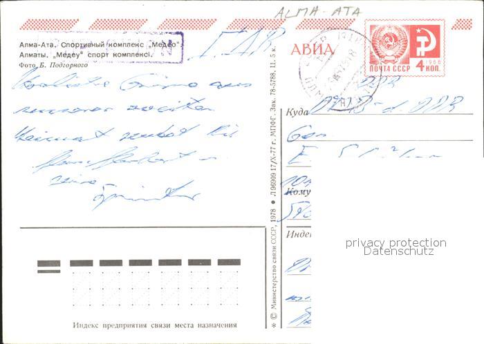 alte Postkarte Alma-Ata Almaty Stadion postalisch gelaufen
