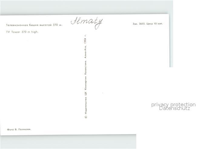 Alma-Ata Almaty TV-Turm postalisch nicht gelaufen Erhaltung siehe scans