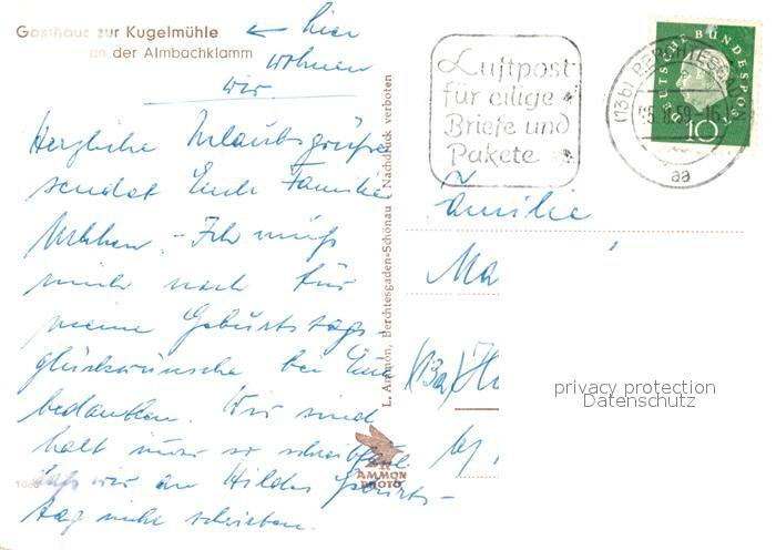 73098627 alte Postkarte Almbachklamm Gasthaus Kugelmuehle postalisch gelaufen Erhaltung siehe scans [KathaD81] KatCode: 11110009172116
