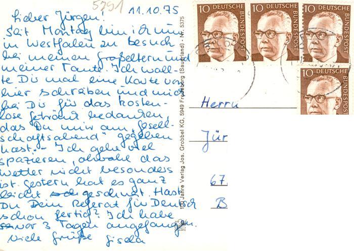 73942837 alte Postkarte Alme Brilon Sauerland Kath Kirche Panorama Parkanlagen Almepartie Schule postalisch gelaufen Erhaltung siehe scans [WerneD78] KatCode: 11110005958012