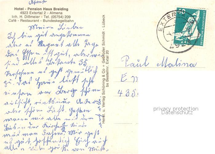 73722544 alte Postkarte Almena Hotel Haus Breiding Teilansichten Pool Terrasse postalisch gelaufen Erhaltung siehe scans [LiesaD40] KatCode: 11110005766028