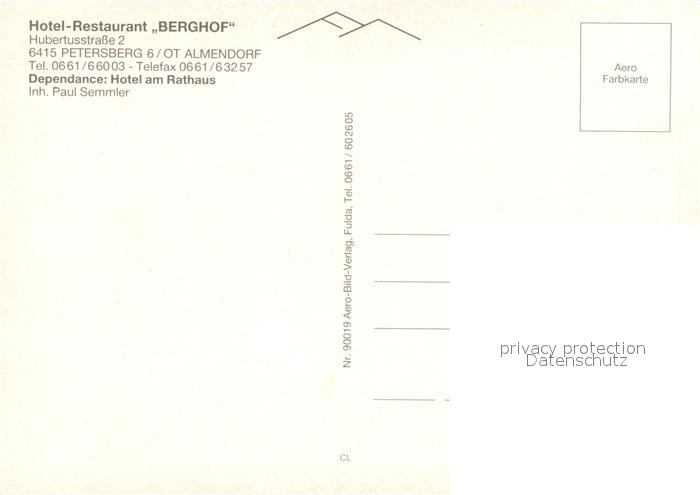 73641638 Almendorf Hotel Restaurant Berghof Dependance Hotel am Rathaus postalisch nicht gelaufen Erhaltung siehe scans [FriedD77] KatCode: 11110006631020