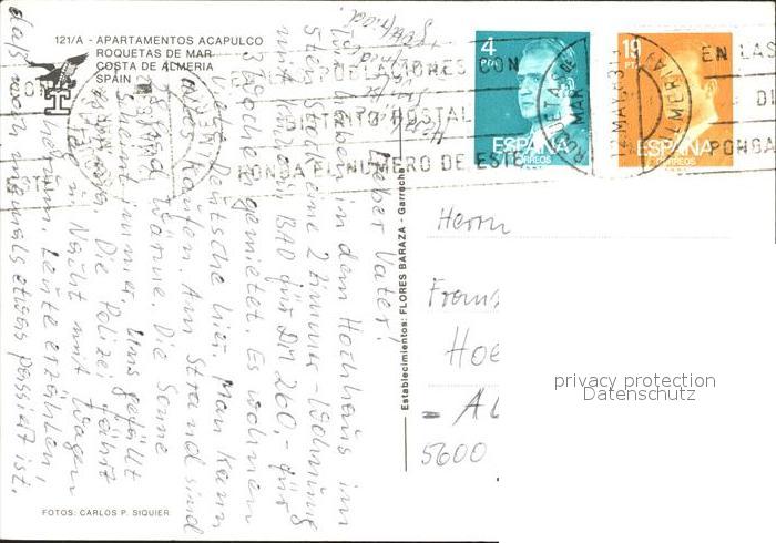 old postcard Almeria Apartamentos Acapulco postalisch gelaufen Erhaltung siehe scans