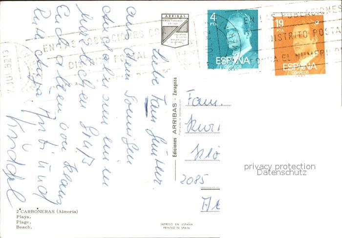 old postcard Almeria Carboneras Strand postalisch gelaufen Erhaltung siehe scans