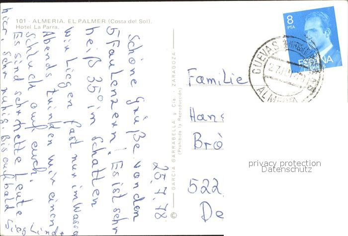 old postcard Almeria Hotel La Parra postalisch gelaufen Erhaltung siehe scans
