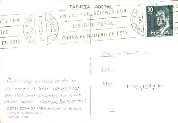 old postcard Almeria Hotel Zoraida Park postalisch gelaufen Erhaltung siehe scans