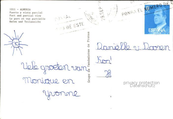 old postcard Almeria Puerto y vista aerea parcial postalisch gelaufen Erhaltung siehe scans