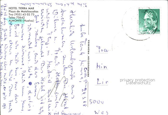 old postcard Almonte Hotel Tierra Mar Playa Matalaocanas postalisch gelaufen Erhaltung siehe scans